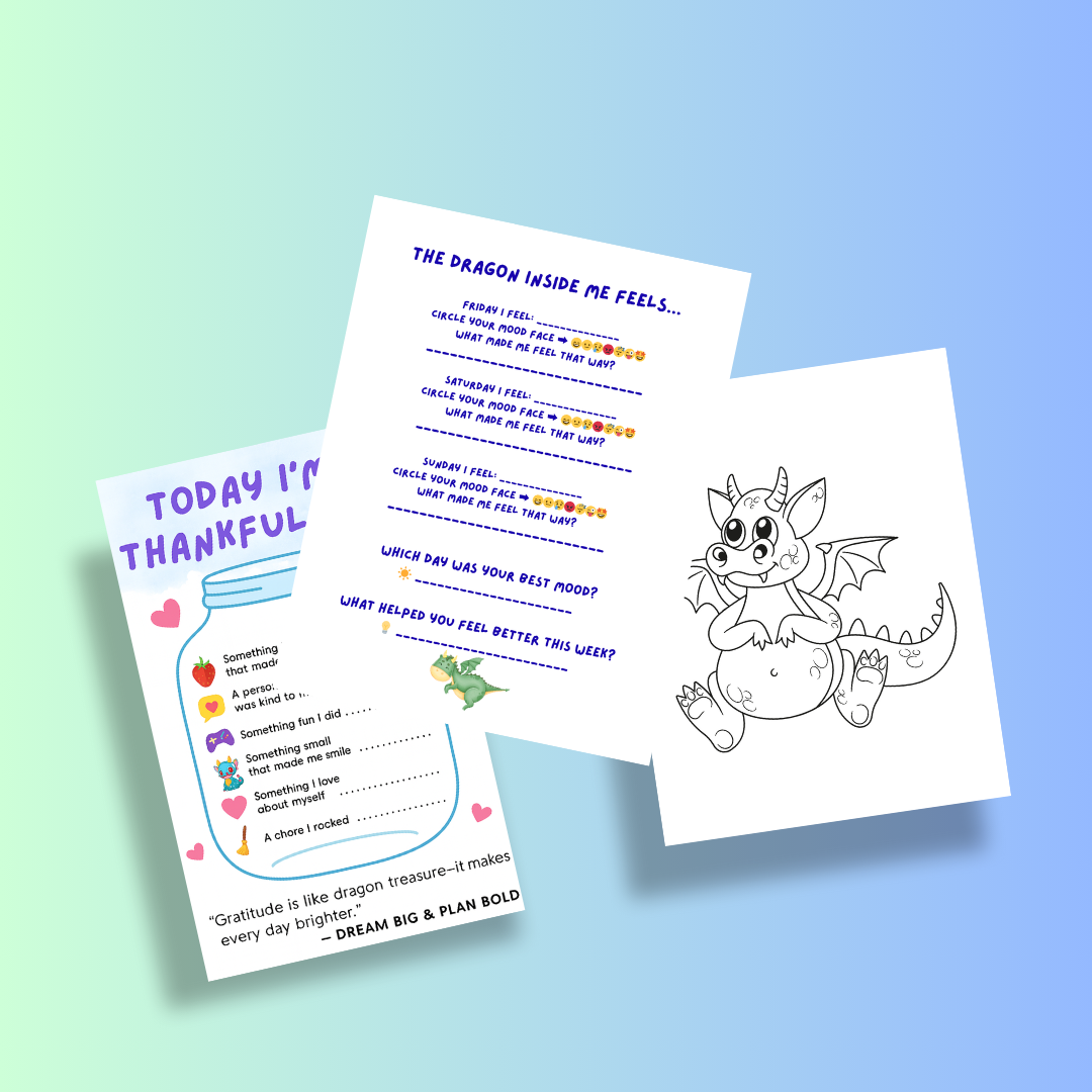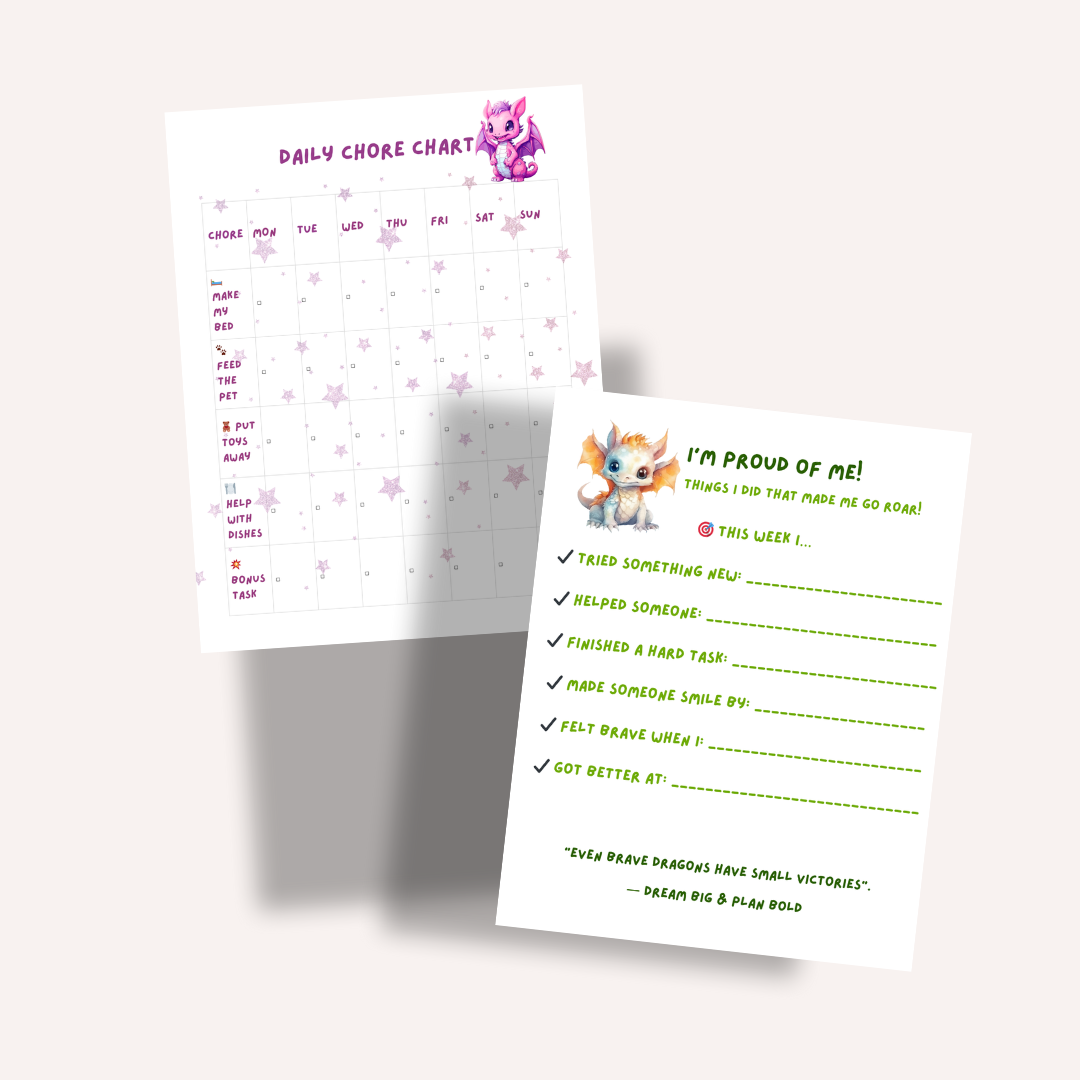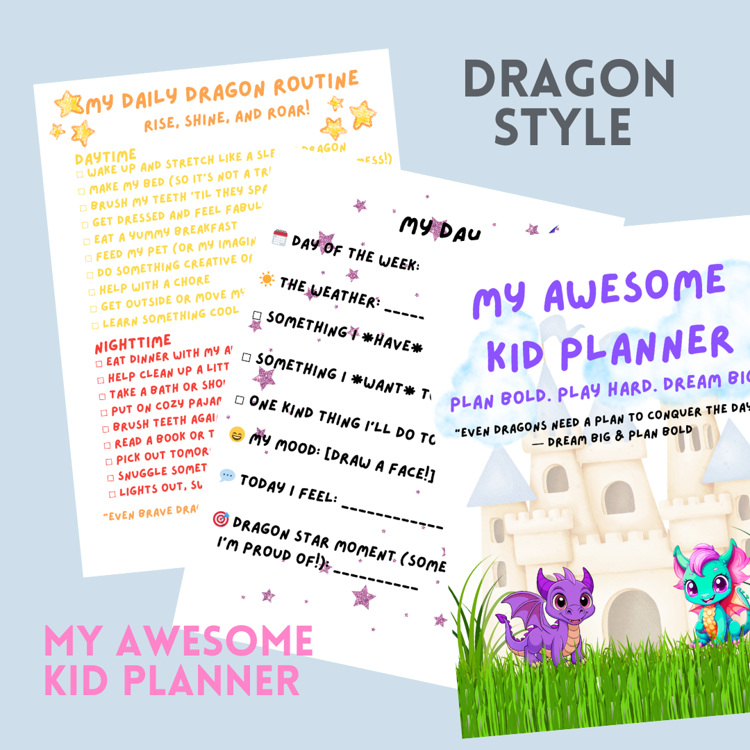 Kids Daily Planner – Printable 20-Page Dragon themed Set (+9 Bonus Dragon Coloring Pages!)